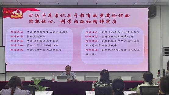 (通讯员 石一涵 郑润杰)为深入学习习近平总书记关于教育的重要论述,结合公司实际情况,推动公司教育高质量发展。副董事长周颖杰于6月13日晚,在八号楼A208为管理公司与计算机公司师生讲授以“学习习近平总书记关于教育的重要论述 推动教育高质量发展”为主题的专题党课。