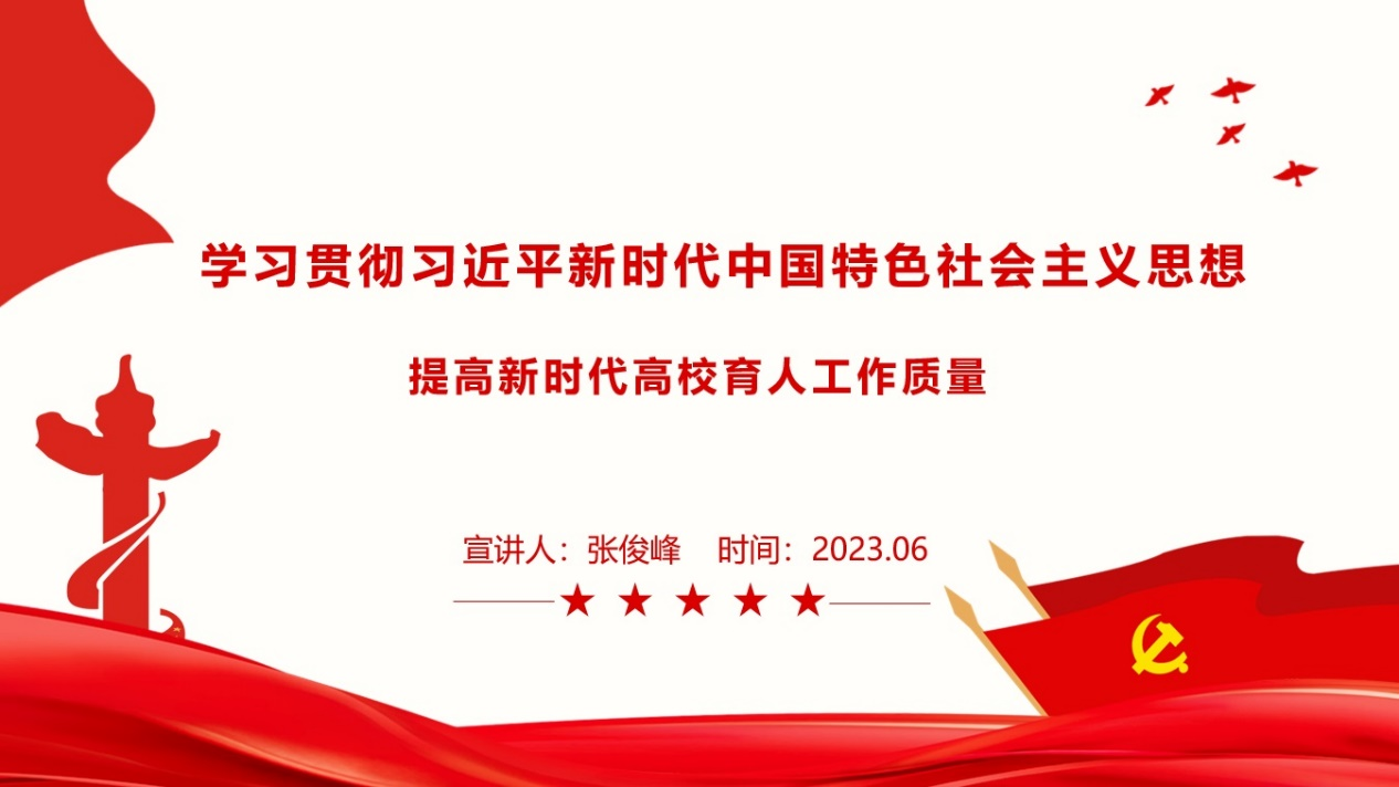 张俊峰围绕“立德树人、铸魂育人”这一主题,强调落实好立德树人根本任务,就是要把习近平总书记关于教育的重要论述领会到位、落实到位。结合当前高校深入实施的“时代新人、铸魂工程”,张俊峰着重强调,要充分发挥教师队伍“主力军”、课程建设“主战场”、课堂教学“主渠道”作用,牢牢把握理想信念教育这一主线,深刻领悟习近平新时代中国特色社会主义思想的世界观和方法论,坚守为党育人、为国育才初心,勇担“国之大计、党之大计”使命。