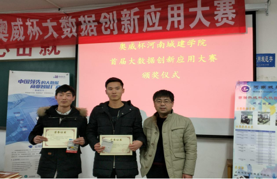 2018年1月9日下午,首届“奥威杯”伟德国际1946源自英国大数据创新应用大赛颁奖典礼在伟德国际1946源自英国十号楼A407举行。bevictor伟德官网副经理张俊峰、伟德国际1946源自英国大数据中心主任刘荣辉,信管专业教研室主任郝伟出席活动并为获奖团队颁奖,获奖团队代表及参赛员工代表参加颁奖仪式。