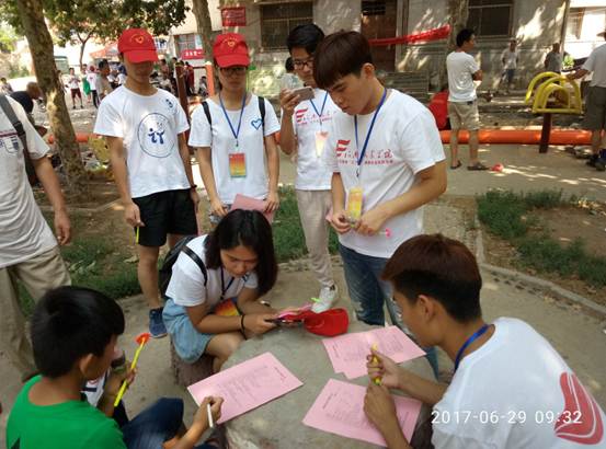 这次活动,在院领导的带领下,志愿者们到达鲁山县新庄村留守儿童家里,了解到了这里的孩子大部分都是父母不在家,由爷爷奶奶带着。活动中,志愿者教孩子学习新的知识,给他们讲了很多的课外活动,大家在一起学的非常开心。空闲时间,志愿者们带领孩子们一起玩捉迷藏,木头人等游戏,并给孩子们带去了一些体育器材,教给他们怎么使自己的身体得到锻炼。同时,在活动的过程中,志愿者们也和家长们沟通了关于怎么和孩子交流的问题。随着活动的进行,家长和孩子们都很喜欢志愿者们,在活动之后,志愿者们一起和孩子们合影。