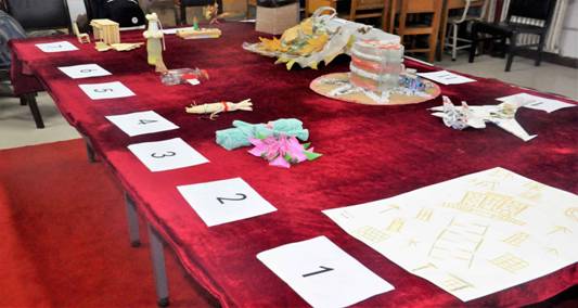 比赛分为初审和决赛投票两个阶段。上午十点,选手们准时将自己的参赛作品交到十号楼A504评选教室,随即主席评审团进行初审,推选出若干优秀作品参加下一阶段投票环节。下午五点,观众投票评选开始。观众们仔细地欣赏着每件参赛作品,不时地称赞选手们的想象力和创造力。随后观众们为自己心仪的作品进行投票决出前三名。最后,由评审主席团给分获一、二、三等奖的选手分发奖状和奖品并合影留念,至此活动圆满结束。