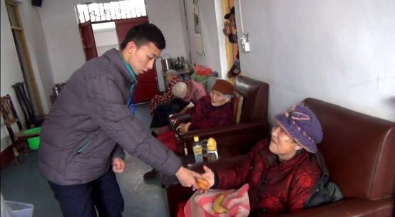 志愿者们为老人带去水果及点心