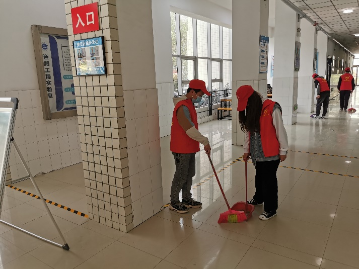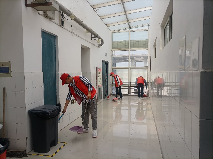 志愿者打扫公司楼道