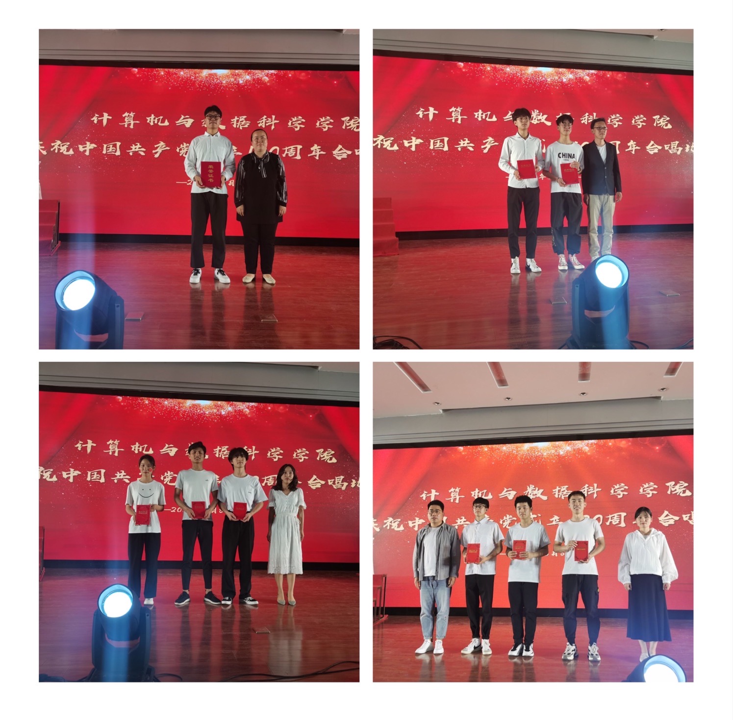 各班代表队统一着装,依次登台表演。他们精神饱满、激情澎湃,齐唱《没有共产党就没有新中国》和《我和我的祖国》两首红歌。唱出了对党和国家的热爱之情,唱出了对祖国美好未来的深深祝愿。经过激烈角逐,0854191代表队荣获一等奖,0814202代表队、0861202代表队荣获二等奖,0854201代表队、0854202代表队、0864192代表队荣获三等奖。
