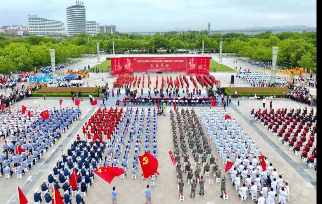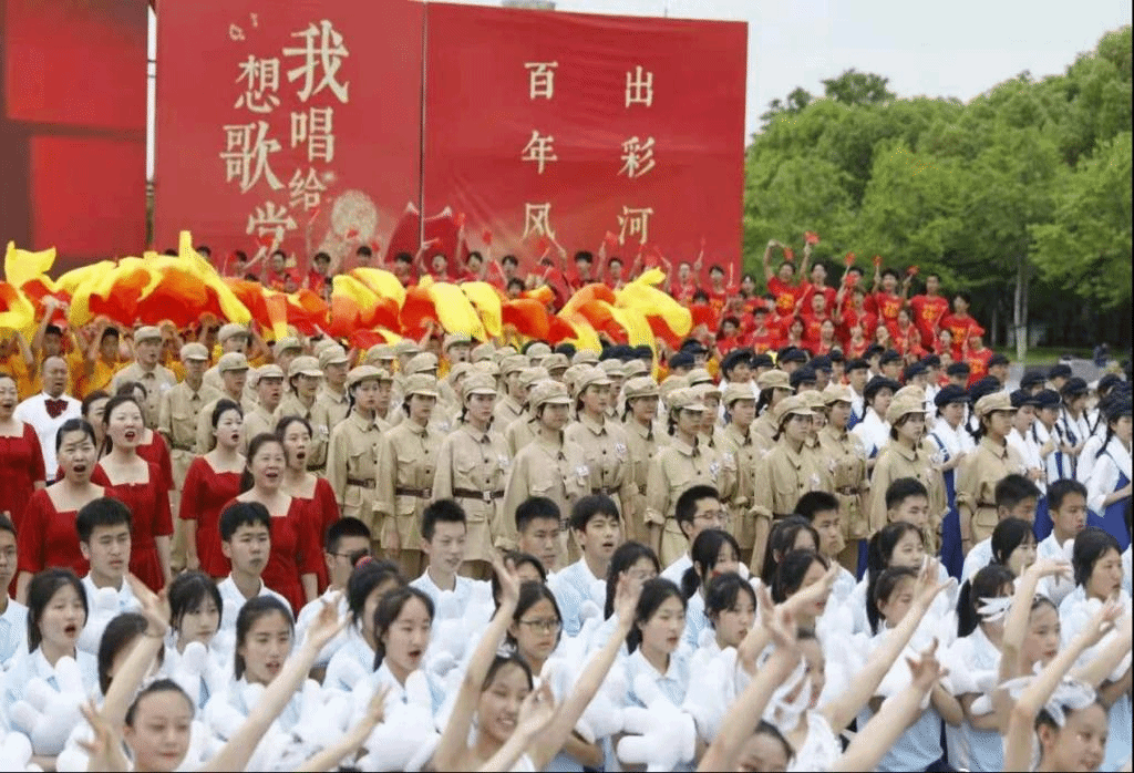 阳光洒遍大地,将整个鹰城置于怀抱当中。一段舞蹈《向往》拉开了序幕,随后,公司优秀员工齐唱《我和2035有个约》,将现场气氛推向高潮。最后,全场千余人齐唱《没有共产党就没有新中国》,歌声嘹亮、激昂、高亢,唱出了对党的无限忠诚与热爱,唱出了对国家美好明天的深深祝福。省、市相关部门负责人还为采访团和接力传唱团代表授旗。